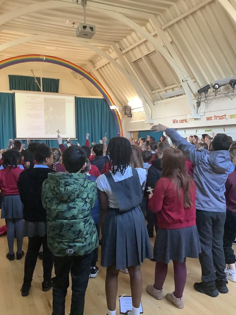 On 9.4.25, the whole school took part in our annual Pilgrimage. Each class was given an area of the Easter story to retell through poetry, linking into the schools recent visit from the 'Rhyming Bible Company'. Each part of the Easter story also linked into the 6 values that we as a school are focusing on across the year.