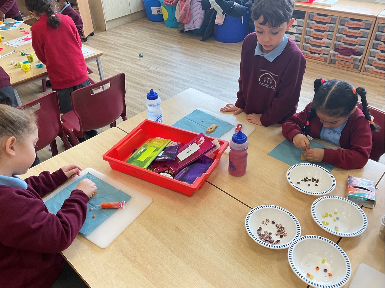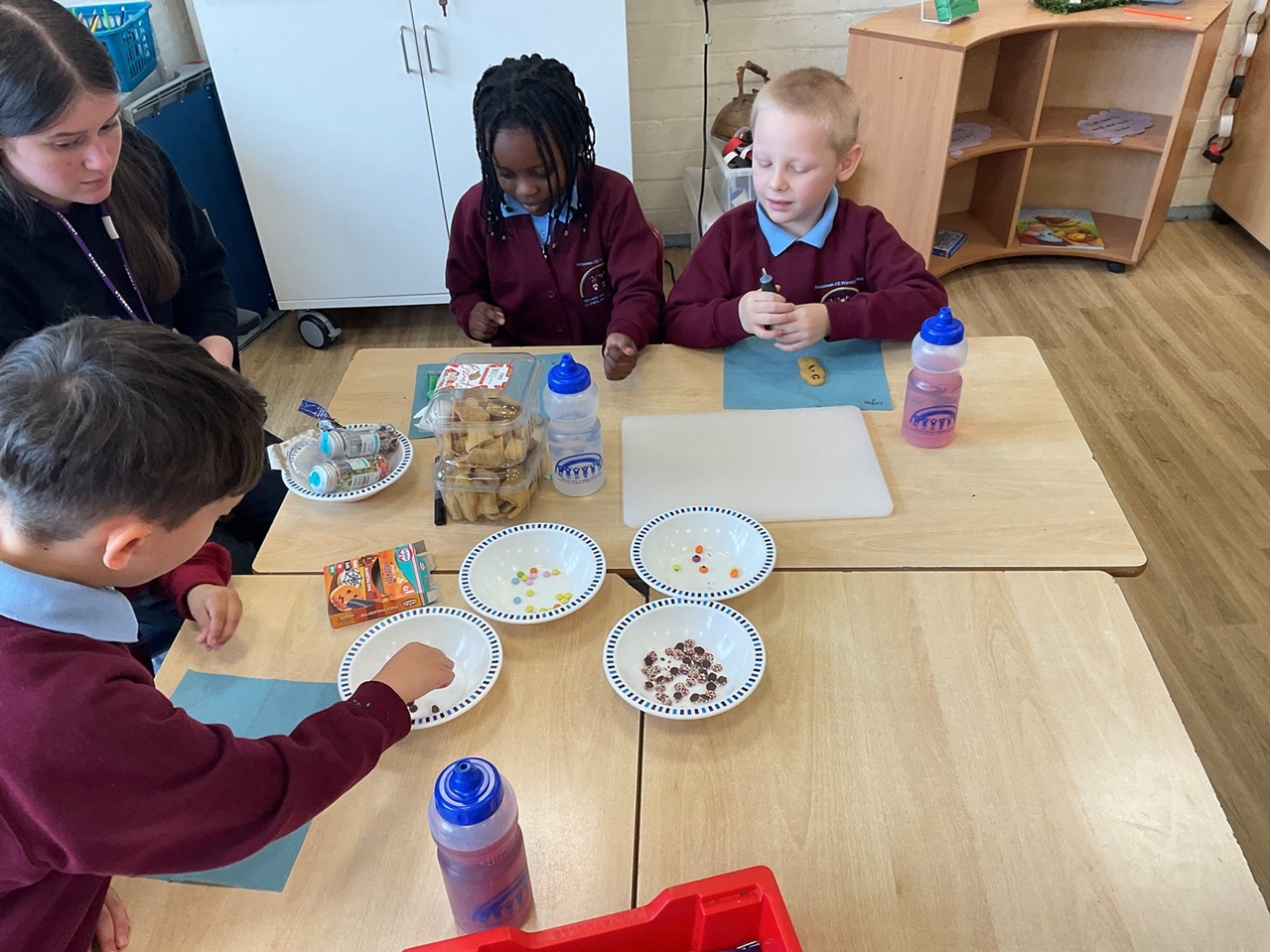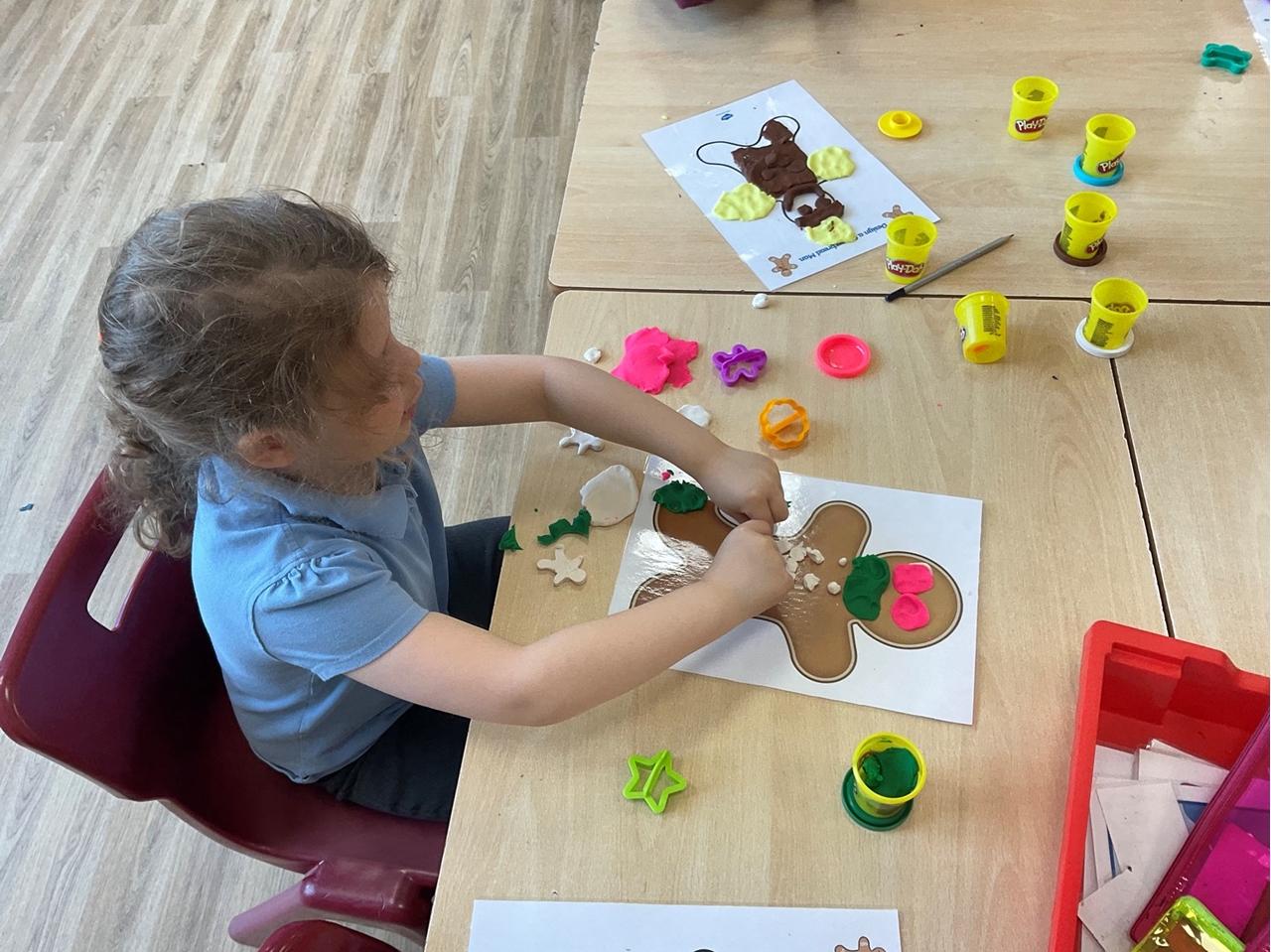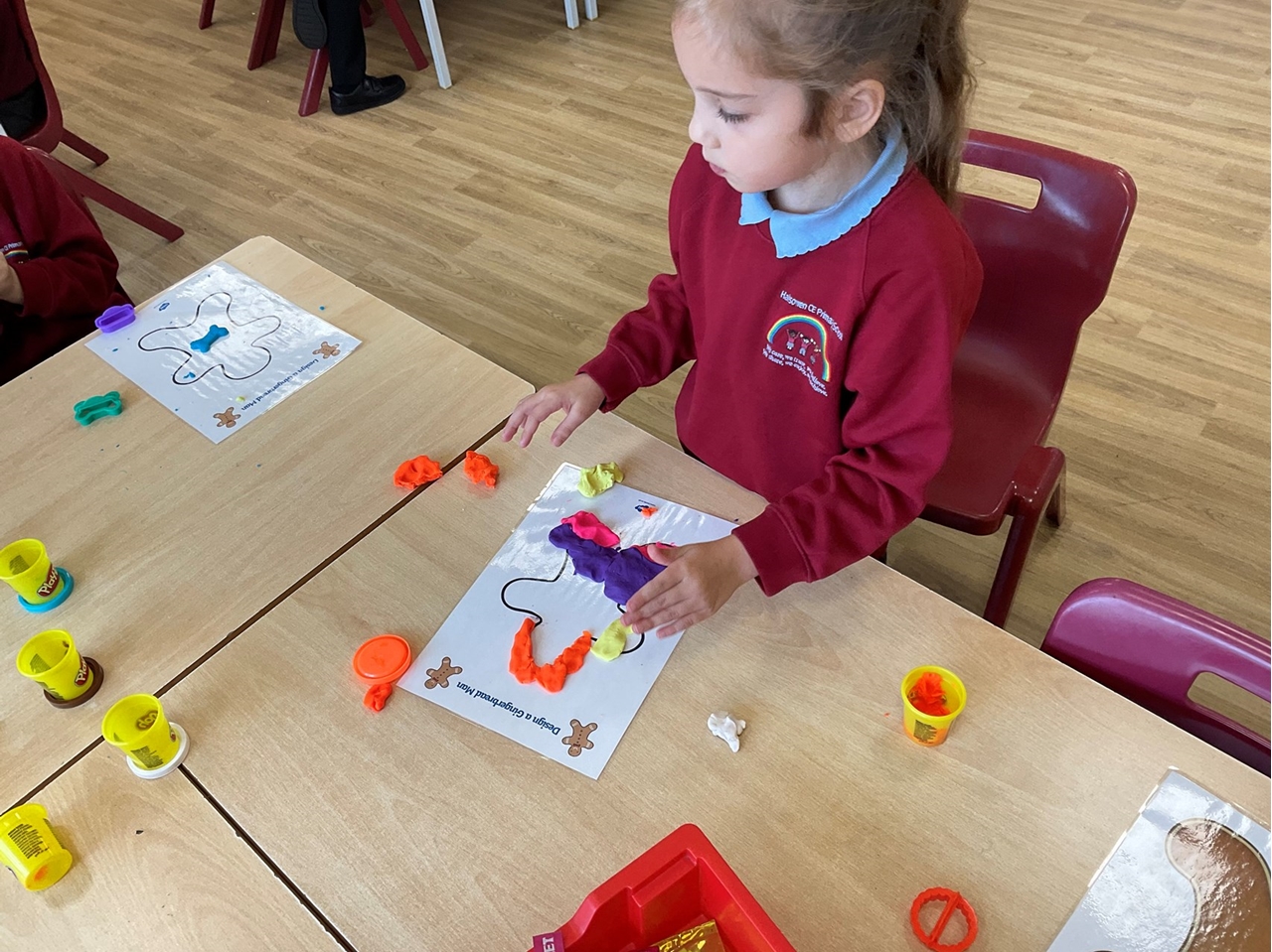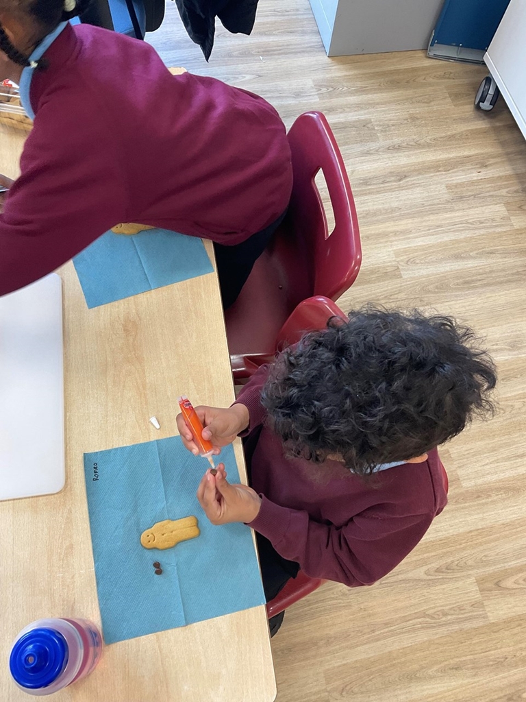 In Year 2 the children have been learning about The Gingerbread Man, as they learn a story with a repeated phrase. To launch the story the children had fun exploring making gingerbread men in different ways. They used icing, chocolates and sweets to decorate gingerbread men biscuits. They playdough to make colourful gingerbread characters. And practiced their cutting skills by designing an outfit for the gingerbread man.