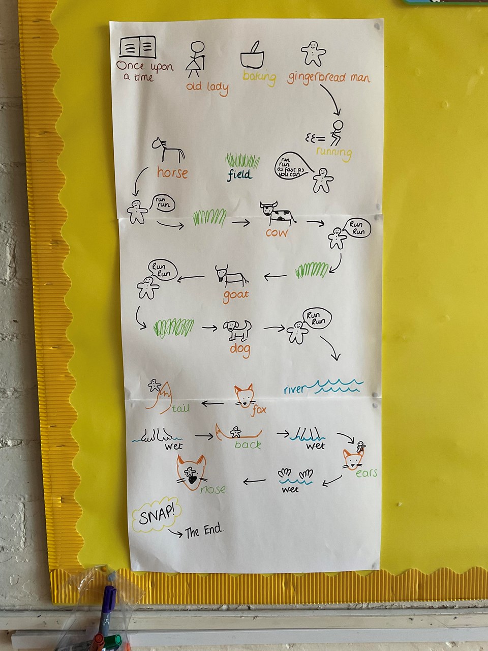 Across the week the children have listened to the story and added in actions to help them remember the sequence of the story. Together they created a story map and can now retell the story of the Gingerbread Man.